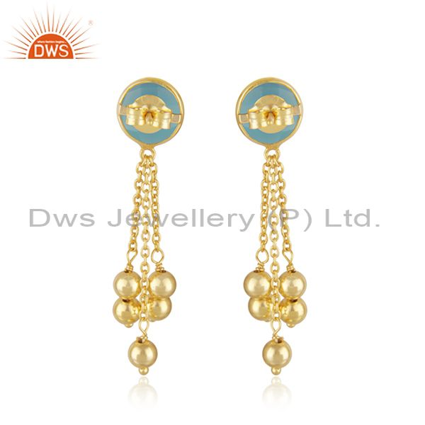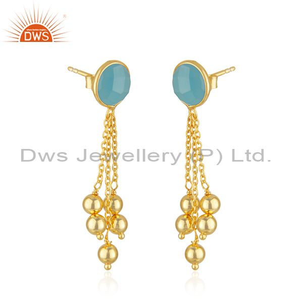 New Arrival Gold Plated Silver Aqua Chalcedony Gemstone Earrings Jewelry