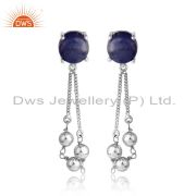New Arrival White Rhodium Plated Silver Tanzanite Earring Jewelry