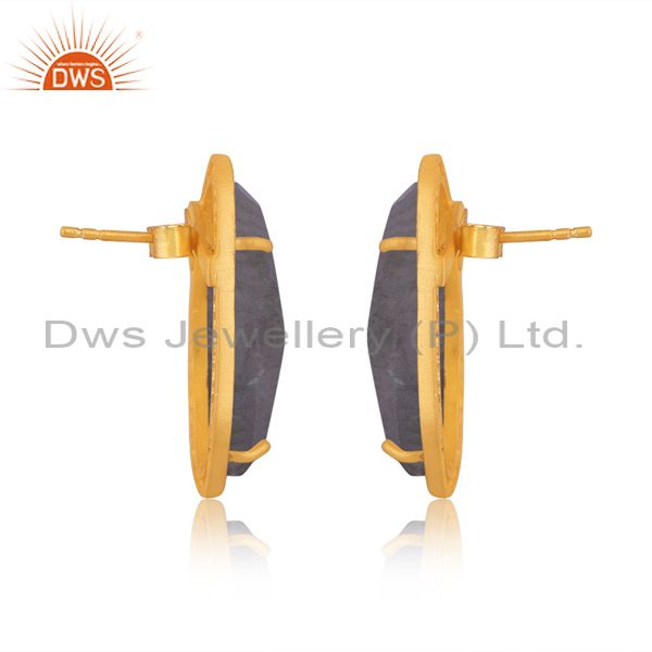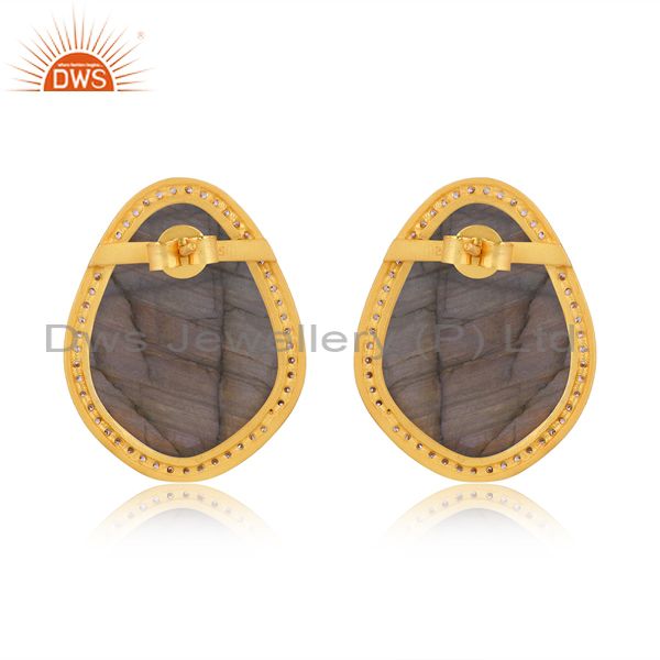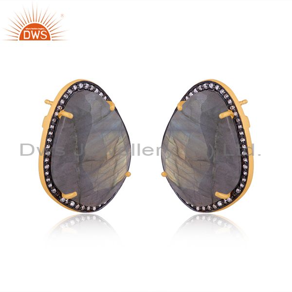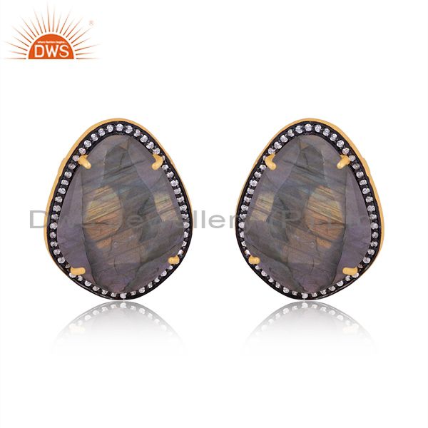 New CZ Labradorite Gemstone Gold On Silver Stud Earring