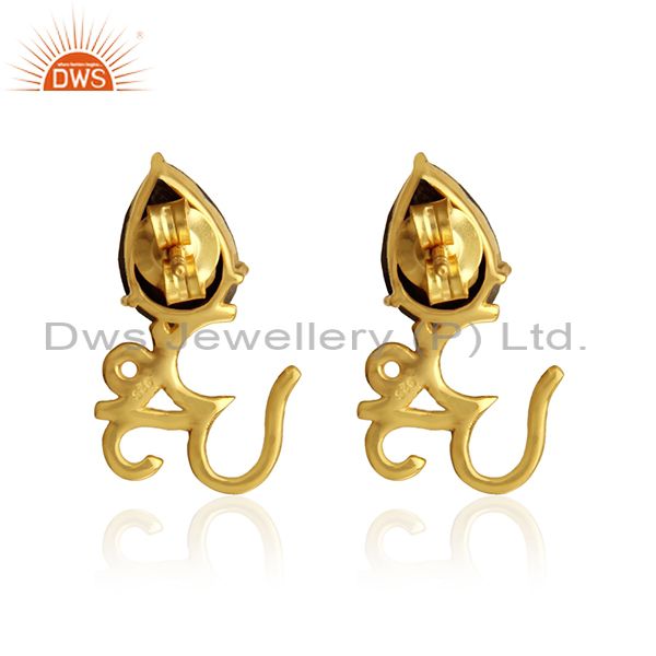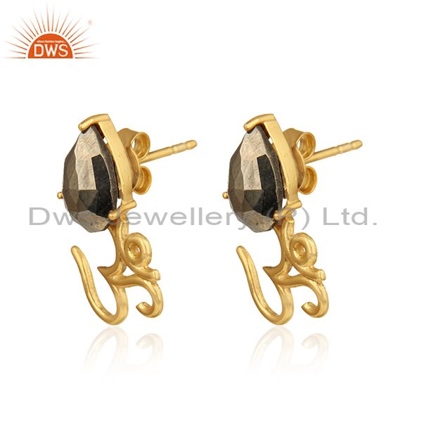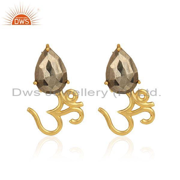 Om Symbol Stud In Yellow Gold On 925 Silver With Shiny Pyrite