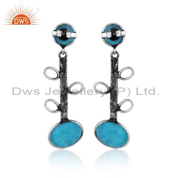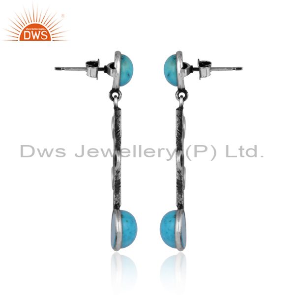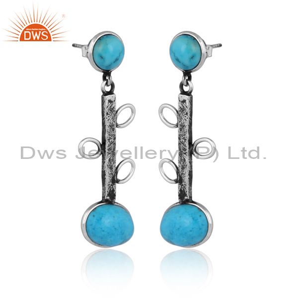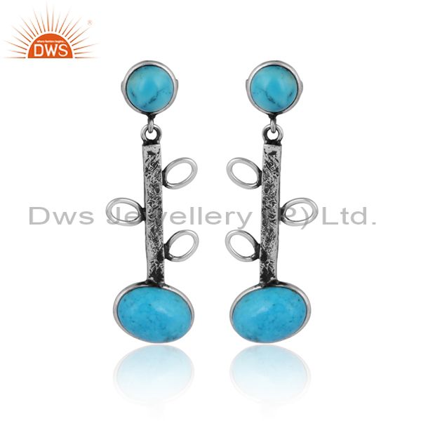 Oval And Round Cut Turquoise Set Oxidized Silver Earrings