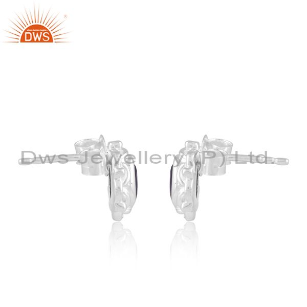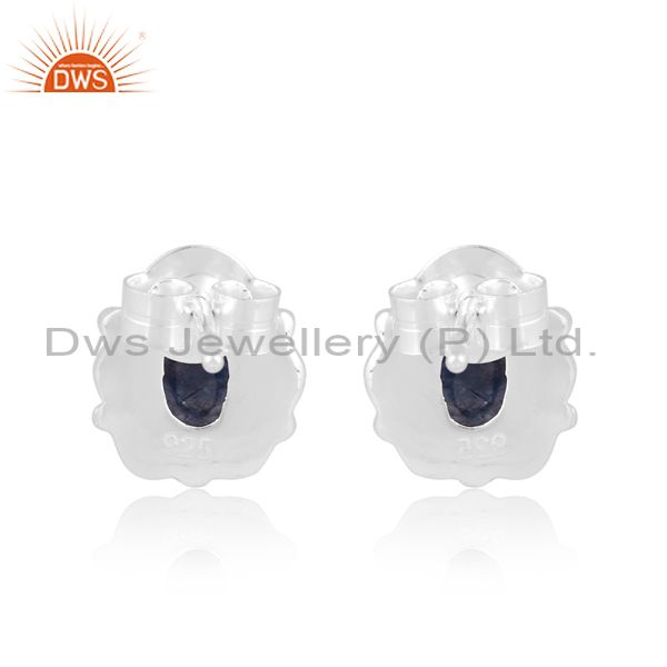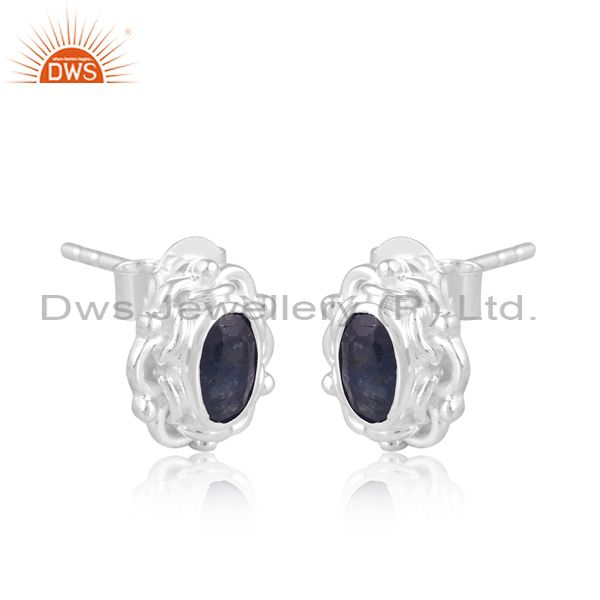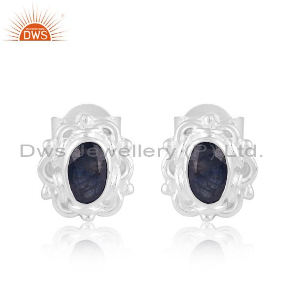 Oval Blue Sapphire Set Ethnic Design Fine Silver Earrings