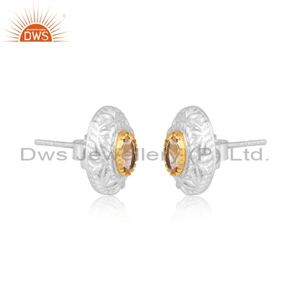 Oval Cut Citrine Set Gold On Fine Sterling Silver Earrings