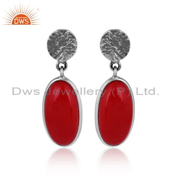 Oval Cut Coral Set Oxide Silver Classic Statement Earrings