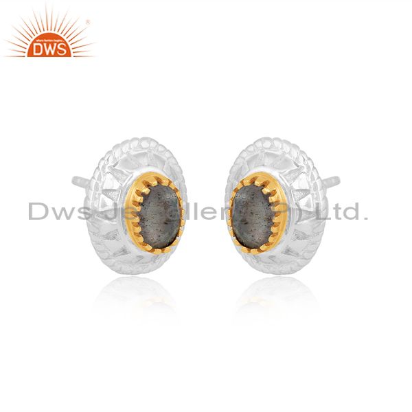Oval Cut Labradorite Set Gold On Fine 925 Silver Earrings