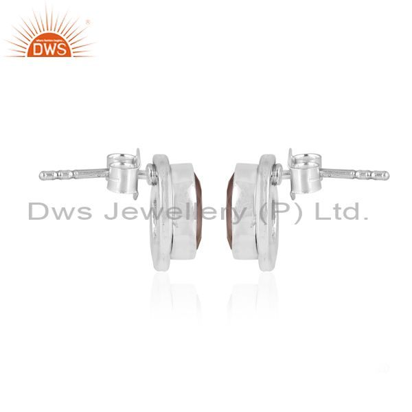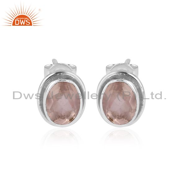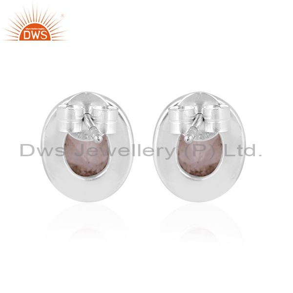 Oval Cut Rose Quartz Set Classic Oxidized Silver Earrings