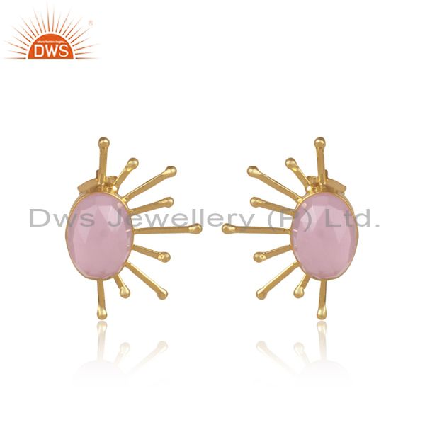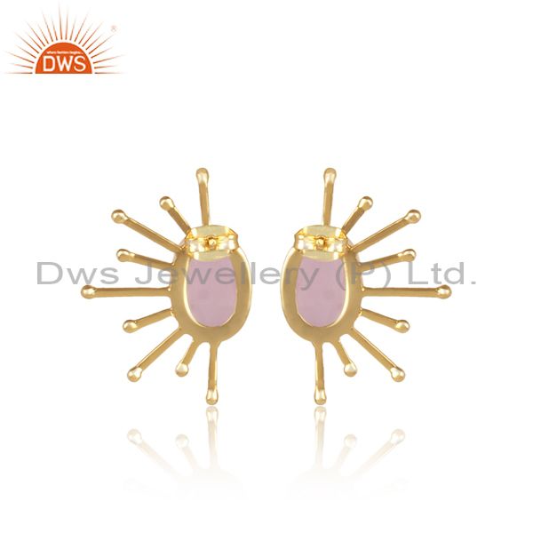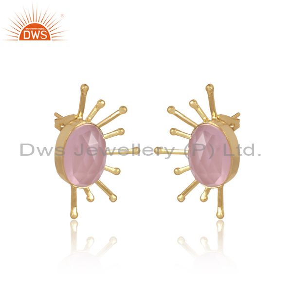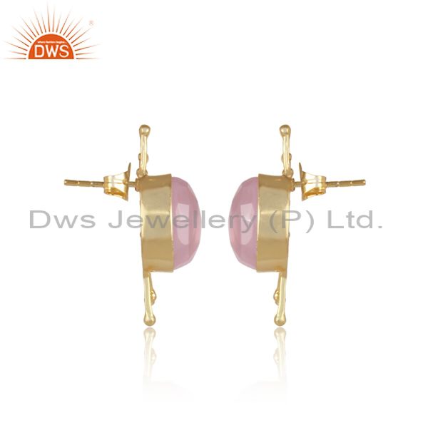 Oval Glass Rose Set Handmade Statement Brass Gold Earrings