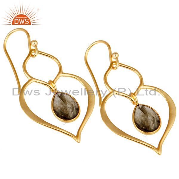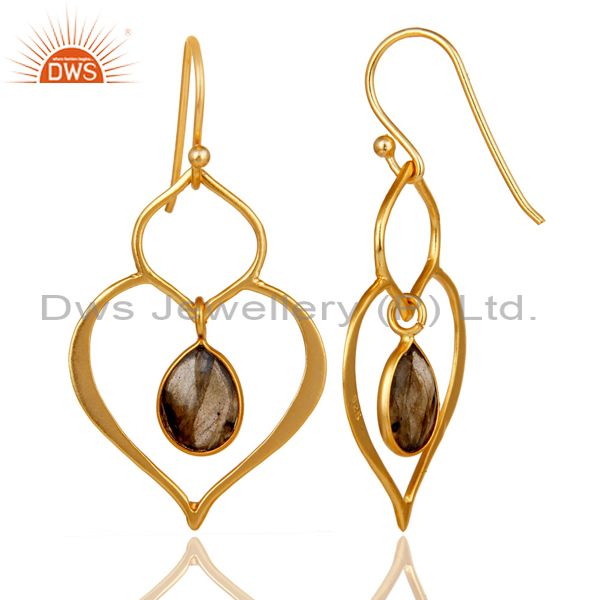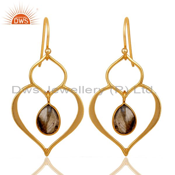 Oval Labradorite Set Gold On Silver Ethnic Designer Earrings