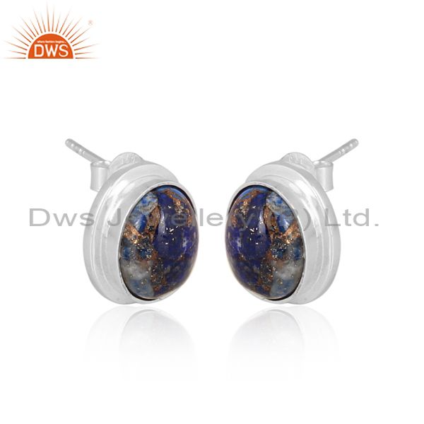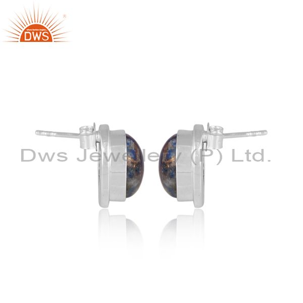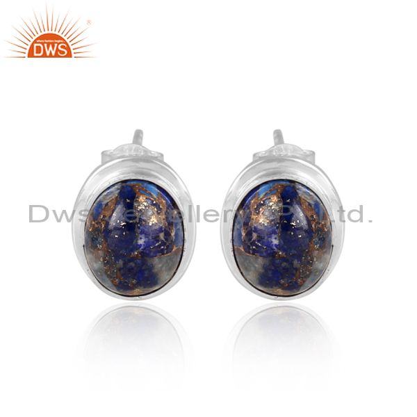Oval mojave copper lapis set fine sterling silver earrings