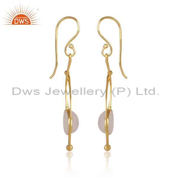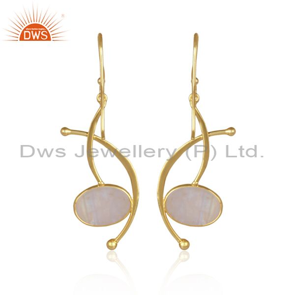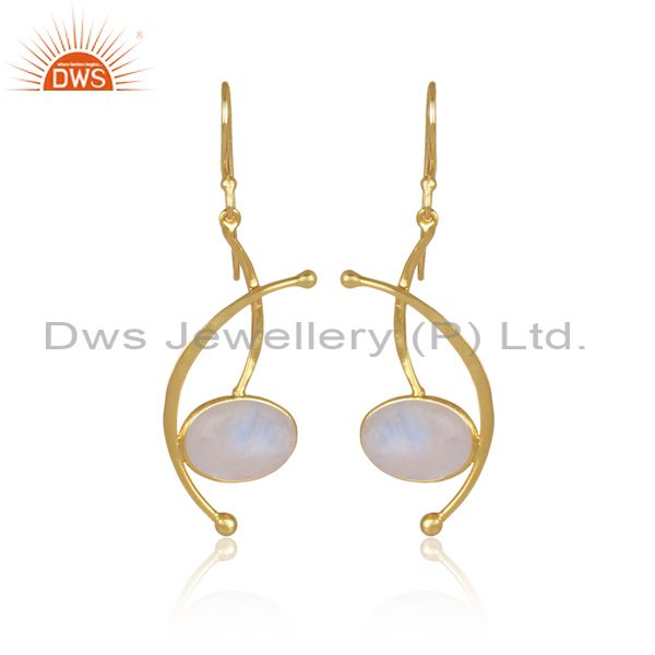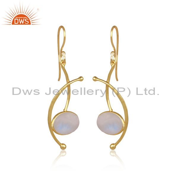 Oval Rainbow Moon Stone Set Gold On Silver Abstract Earrings
