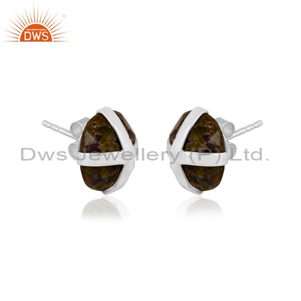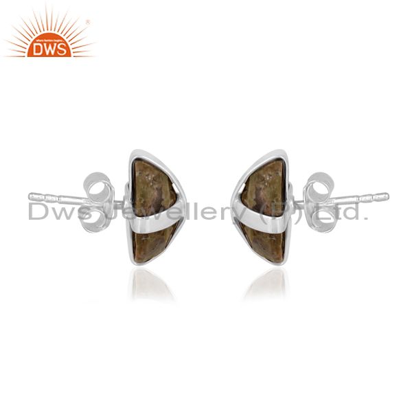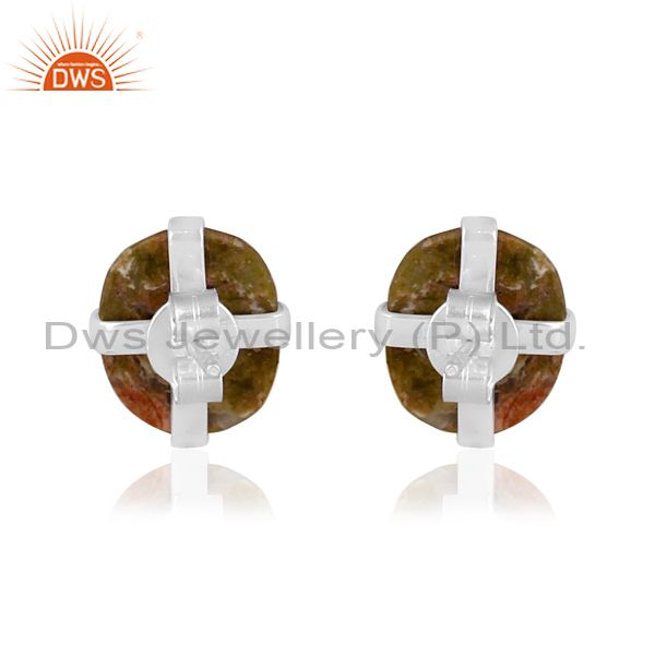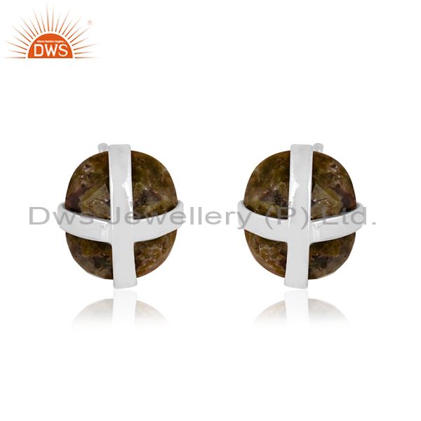 Oval rose cut unakite set fine silver classy design earrings