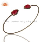 Oxidized 14K Solid Yellow Gold Ruby And Pave Set Diamond Stud Earrings For Women
