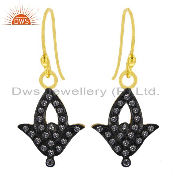 Oxidized 18K Gold Plated Sterling Silver Cubic Zirconia Fashion Drop Earrings