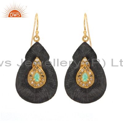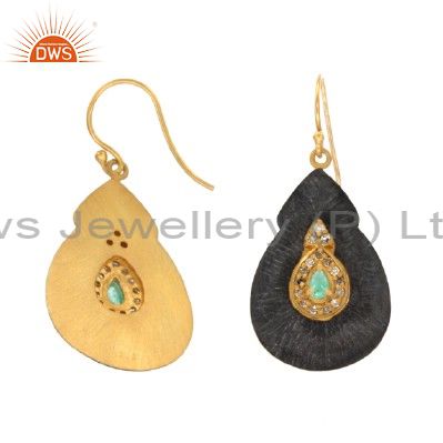 Oxidized 18K Gold Sterling Silver Emerald And Pave Set Diamond Dangle Earrings
