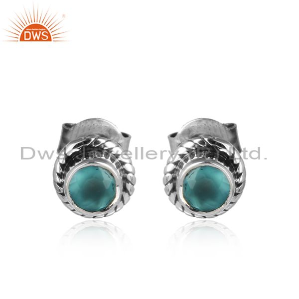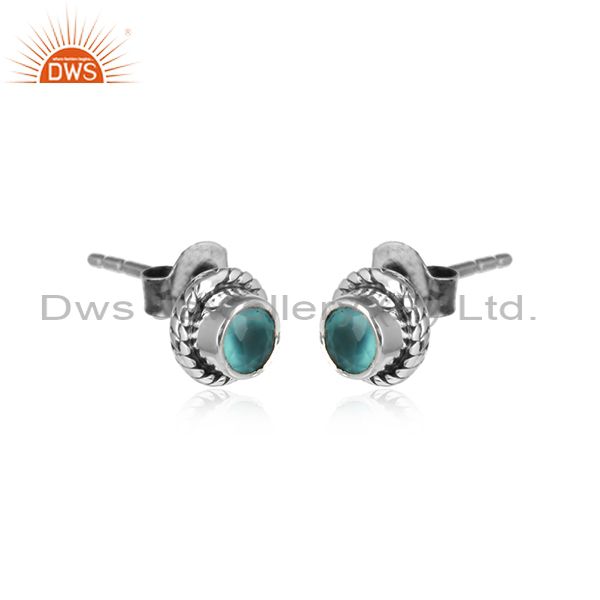Oxidized 925 Silver Designer Aqua Chalcedony Stud Earring Jewelry