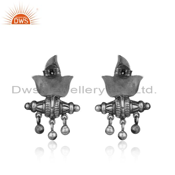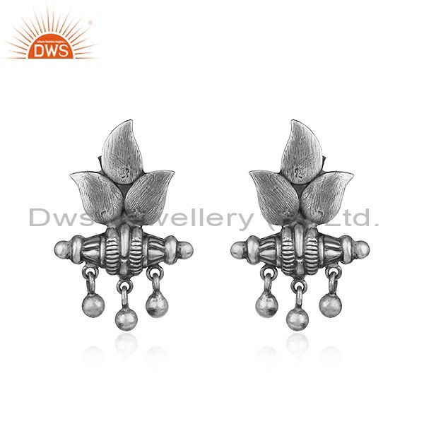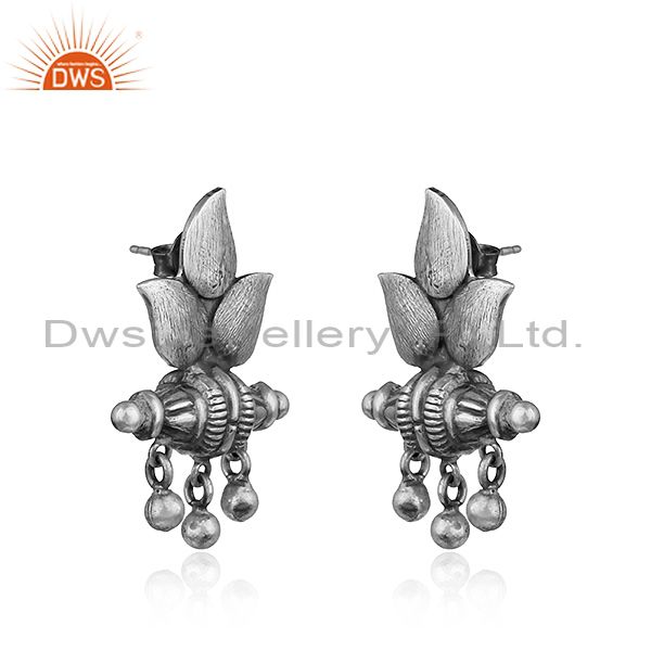Oxidized 925 Sterling Plain Silver Antique Design Earrings Jewelry