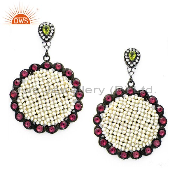 Oxidized 925 Sterling Silver Peridot And Cz Victorian Style Dangle Earrings