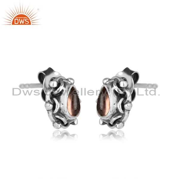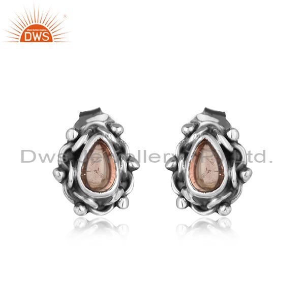 Oxidized 925 Sterling Womens Pink Tourmaline Gemstone Earrings