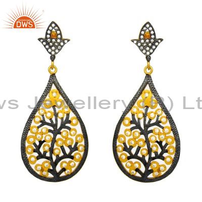 Oxidized And 14K Gold Plated Sterling Silver Cz Floral Design Filigree Earrings