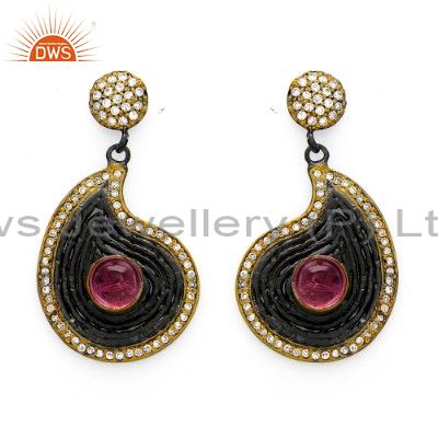 Oxidized And 14K Gold Plated Sterling Silver Pink Tourmaline & Cz Drop Earrings