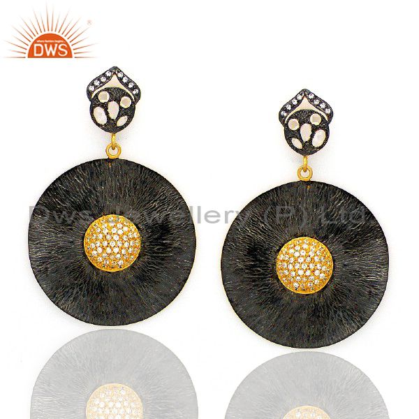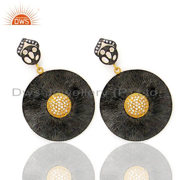 Oxidized And 18K Gold Plated Brass Cubic Zirconia Disc Fashion Dangle Earrings