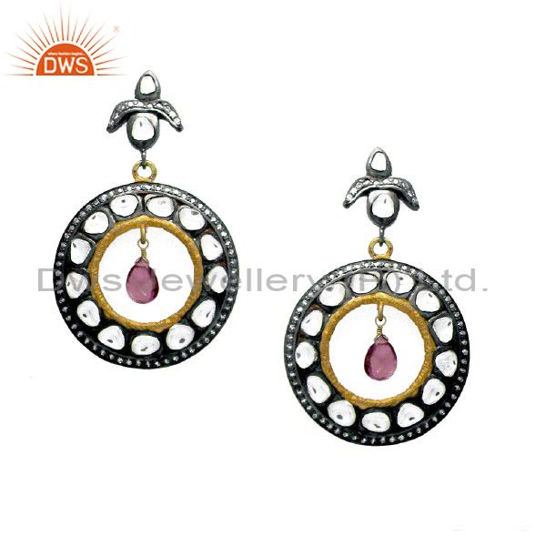 Oxidized And 18K Gold Plated Sterling Silver Tourmaline And Cz Polki Earrings