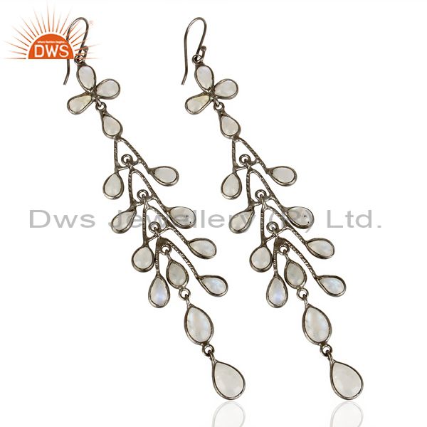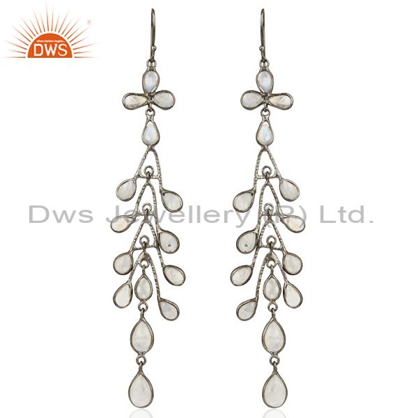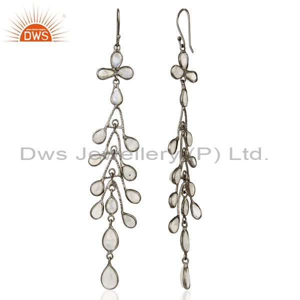 Oxidized Brass Rainbow Moonstone Handmade Design Dangle Earrings