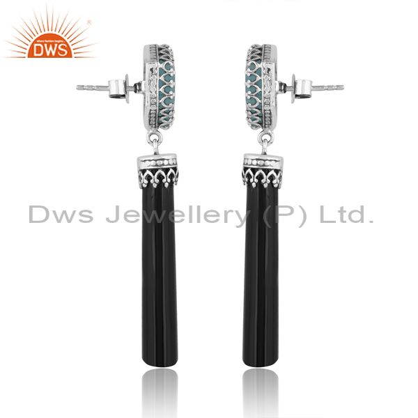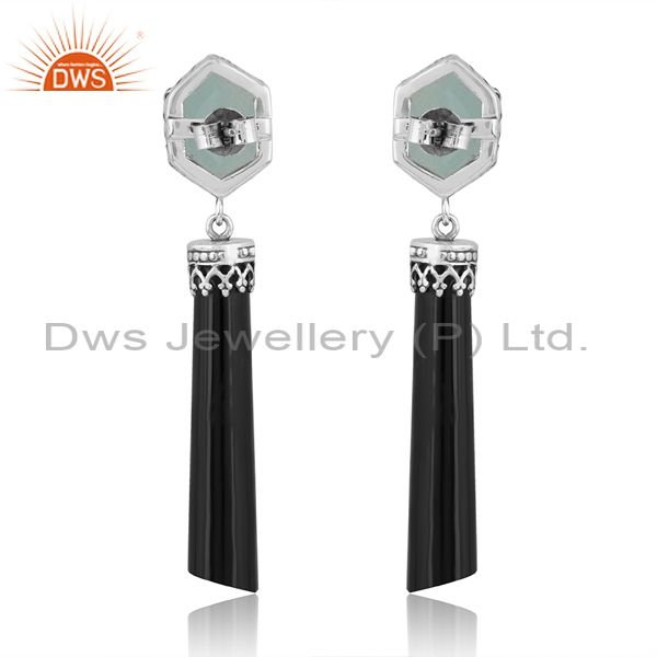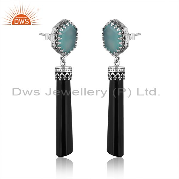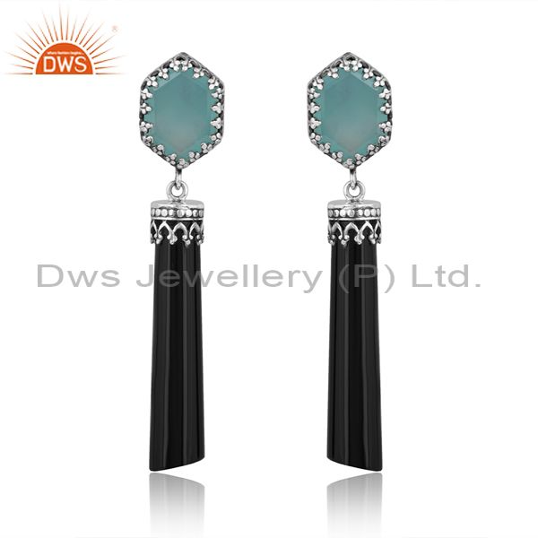 Oxidized Silver Earrings With Aqua Calcedony & Black Onyx