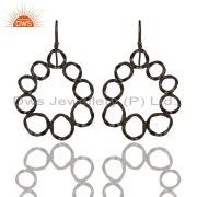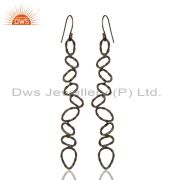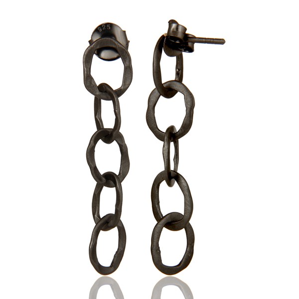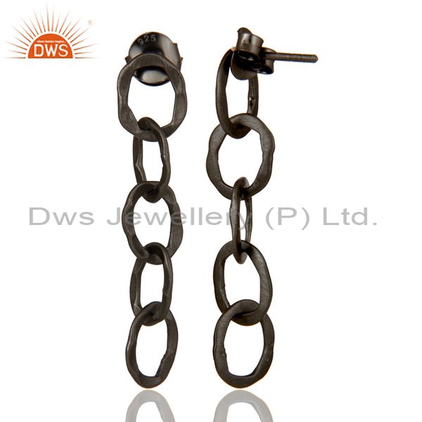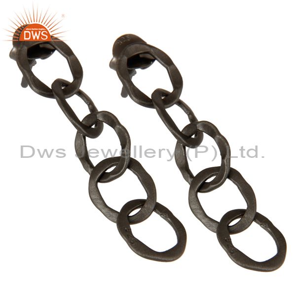 Oxidized Solid Sterling Silver Hammered Link Chain Dangle Earrings