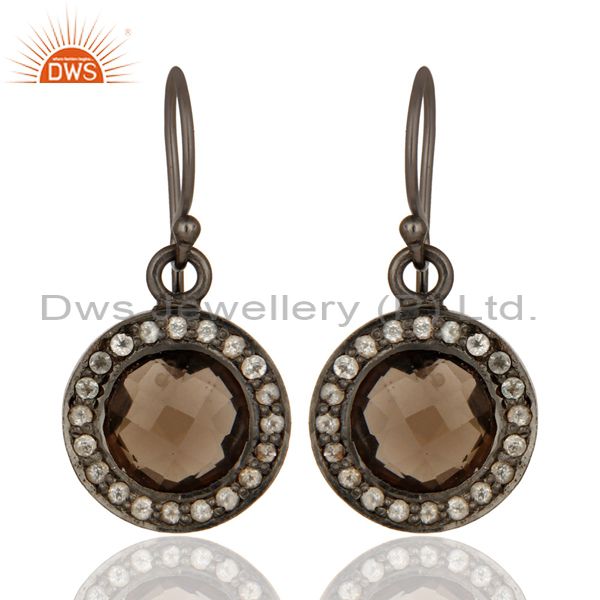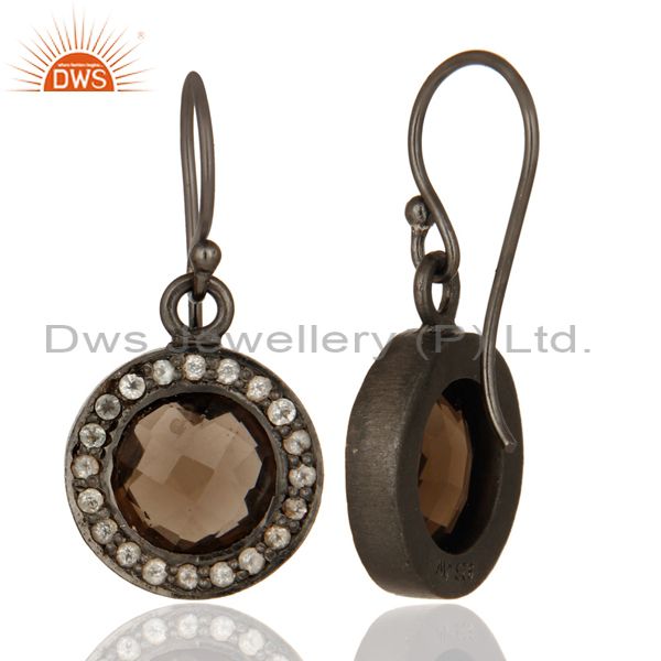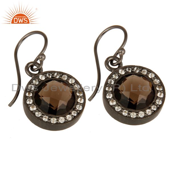 Oxidized Solid Sterling Silver White Topaz And Smoky Quartz Drop Earrings