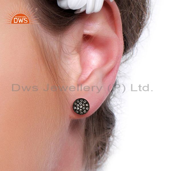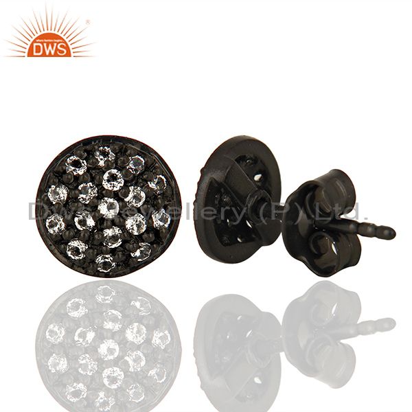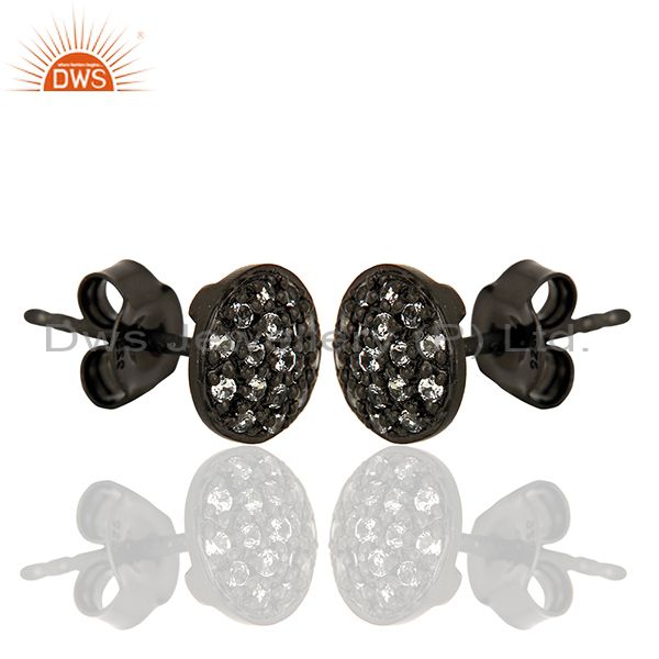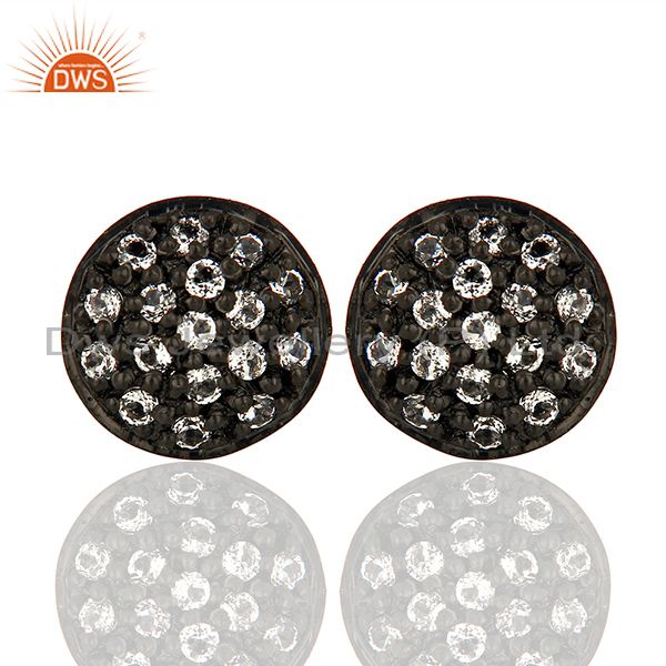 Oxidized Solid Sterling Silver White Topaz Stud Earrings For Womens
