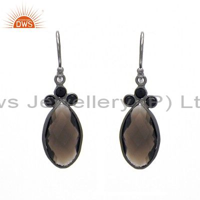 Oxidized Sterling Silver Black Onyx And Smoky Quartz Gemstone Dangle Earrings