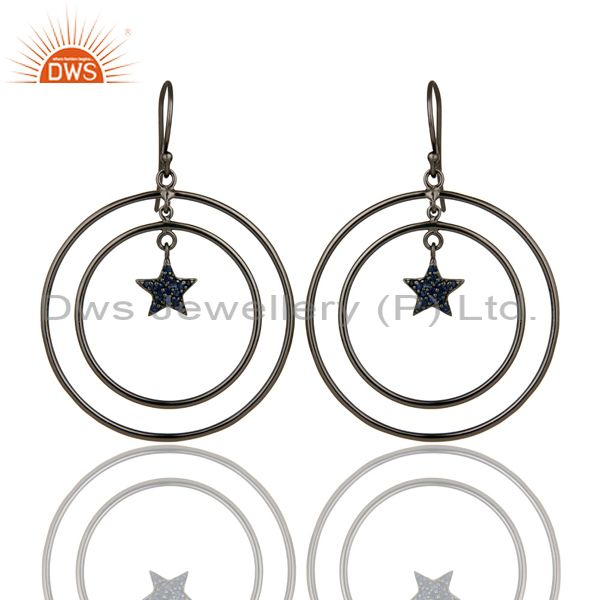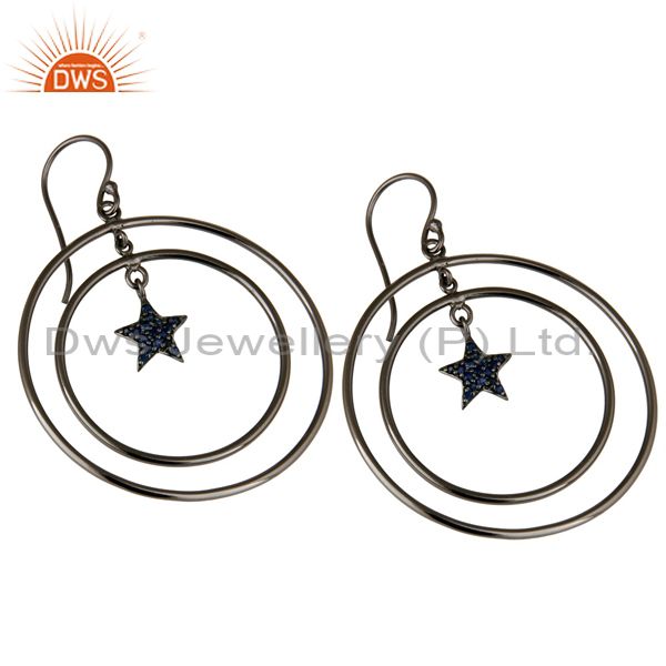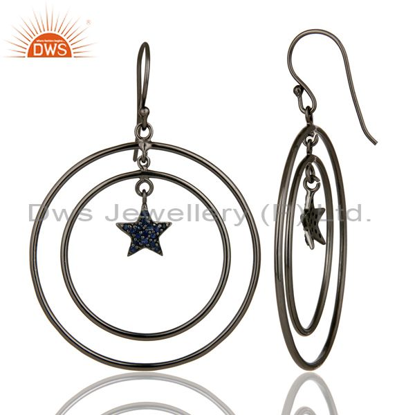 Oxidized Sterling Silver Blue Sapphire Star Multi Circle Dangle Earrings