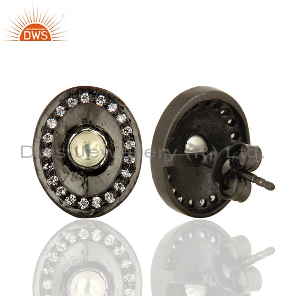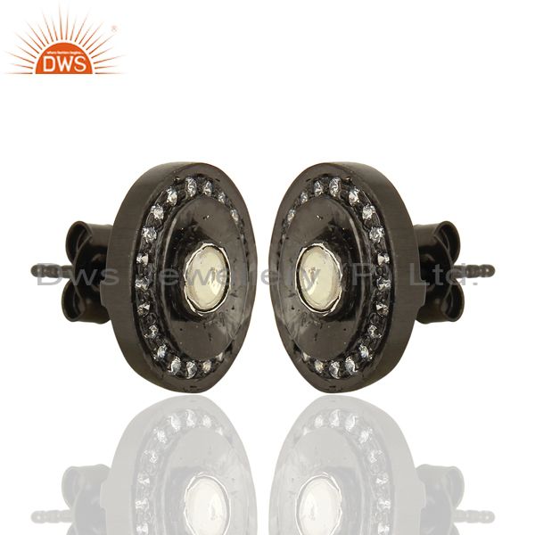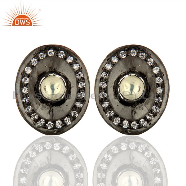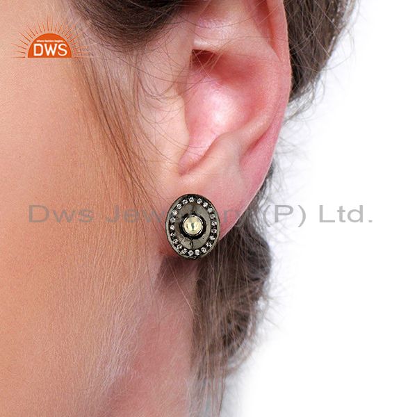 Oxidized Sterling Silver Crystal Cz Polki Victorian Style Womens Stud Earrings