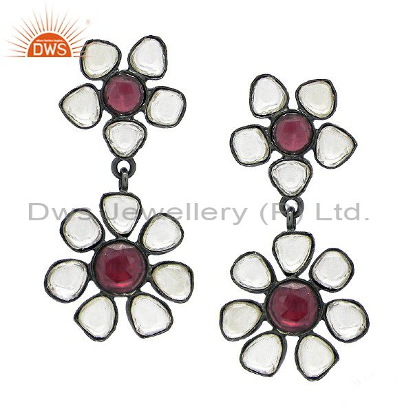 Oxidized Sterling Silver Crystal Polki And Rhodolite Antique Look Dangle Earring
