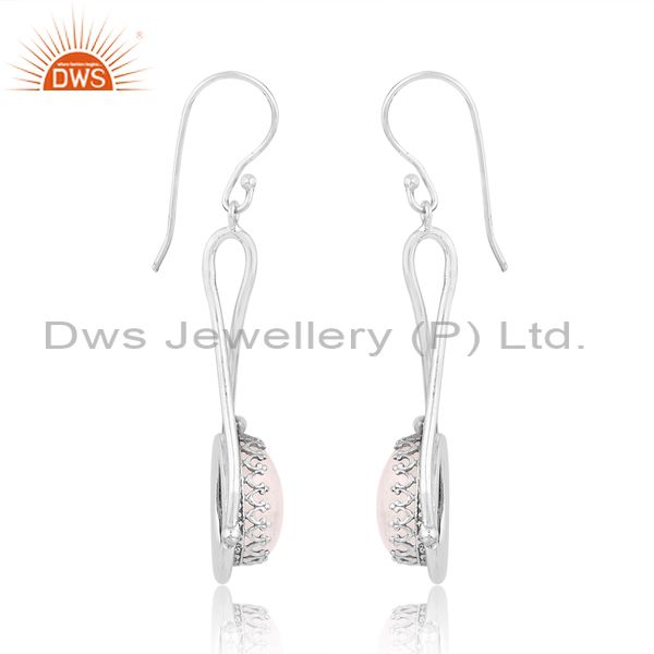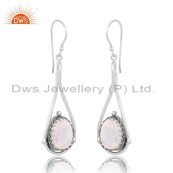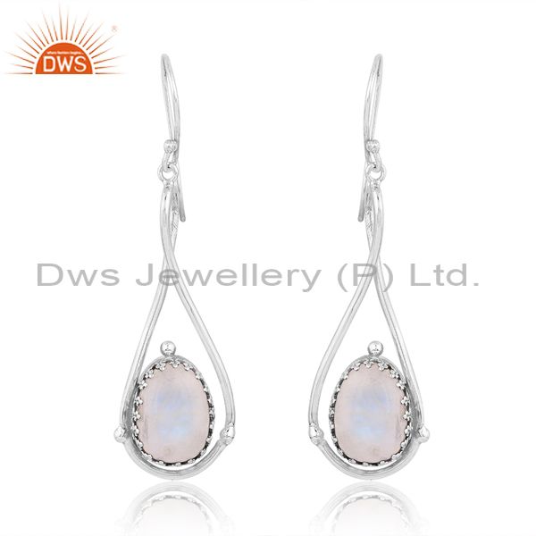 Oxidized Sterling Silver Earring With Rainbow Moonstone