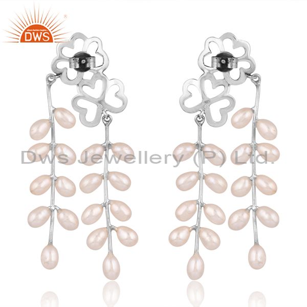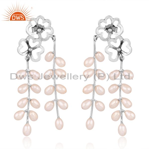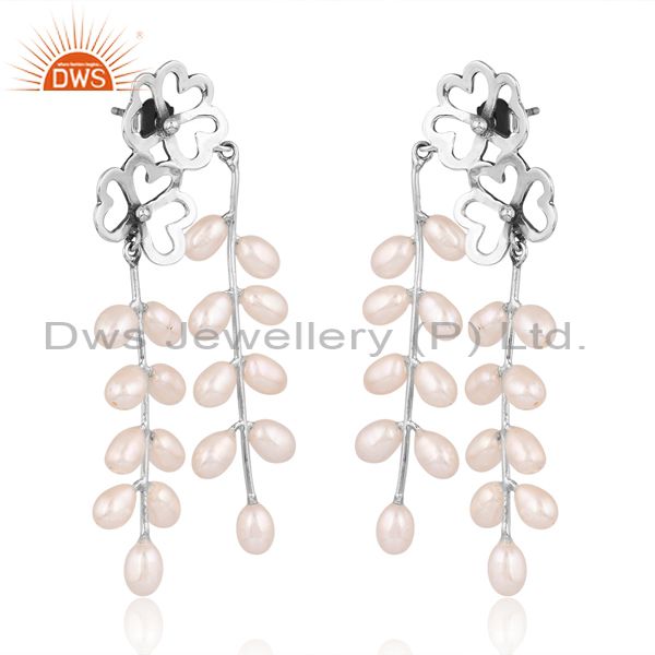 Oxidized Sterling Silver Earrings With Pearl Plain Briolette