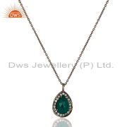 Oxidized Sterling Silver Green Onyx And White Topaz Halo Dangle Earrings