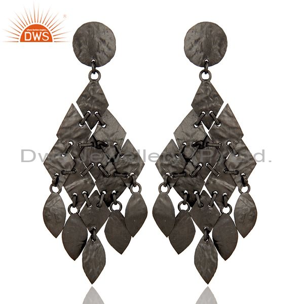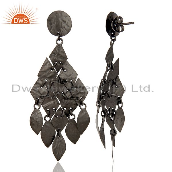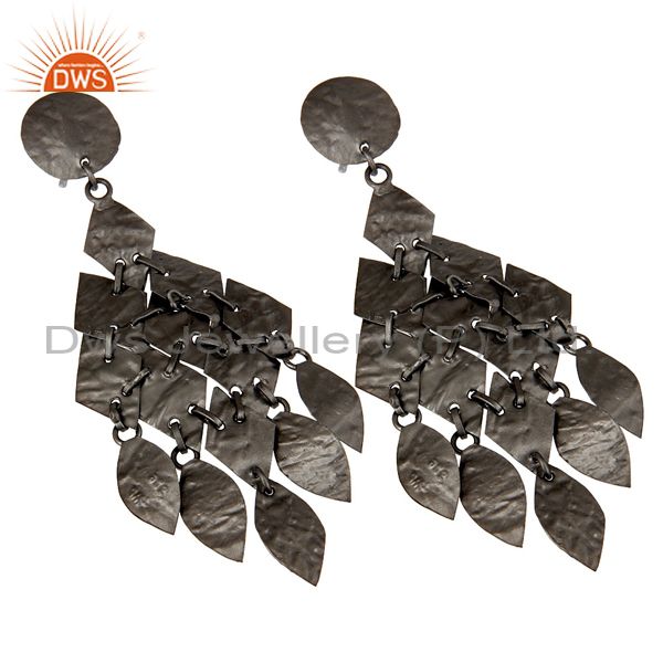 Oxidized Sterling Silver Hammered Petals Womens Chandelier Earrings
