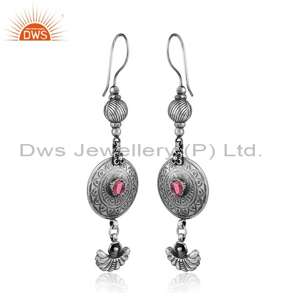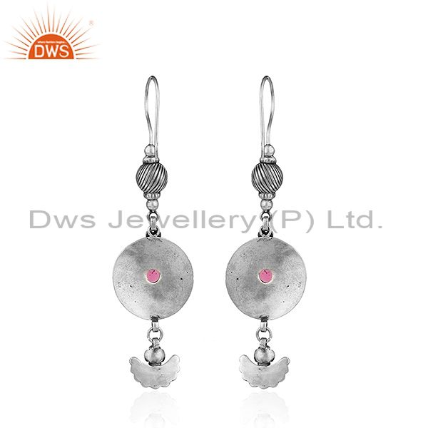 Oxidized Sterling Silver Hydro Pink Gemstone Antique Earrings Jewelry