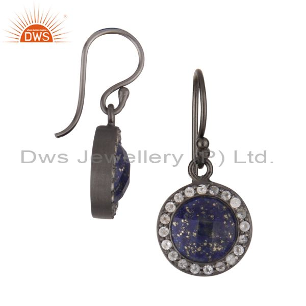 Oxidized Sterling Silver Lapis Lazuli And White Topaz Halo Style Drop Earrings