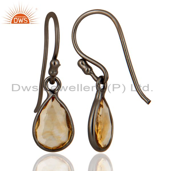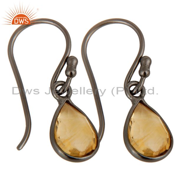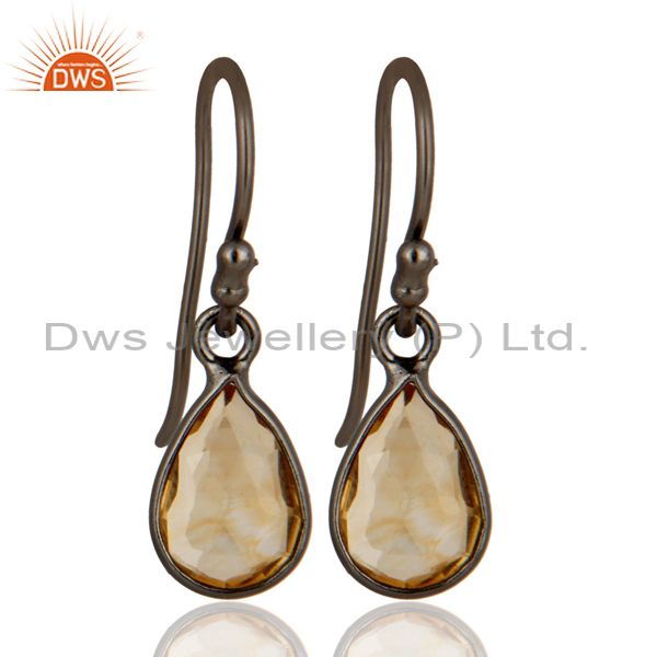 Oxidized Sterling Silver Natural Citrine Gemstone Bezel Set Teardrop Earrings