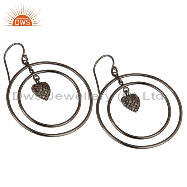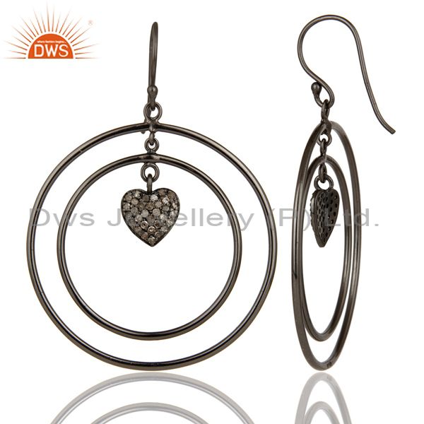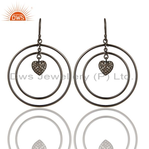 Oxidized Sterling Silver Pave Set Diamond Heart Design Circle Dangle Earring