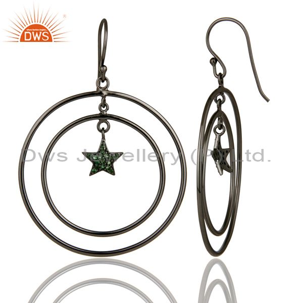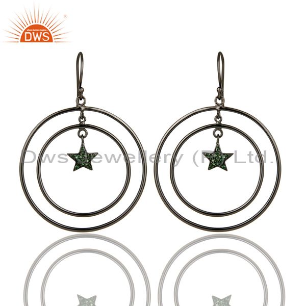Oxidized Sterling Silver Pave Set Tsavorite Star Multi Circle Dangle Earrings