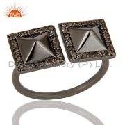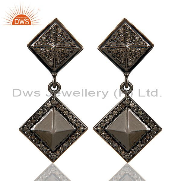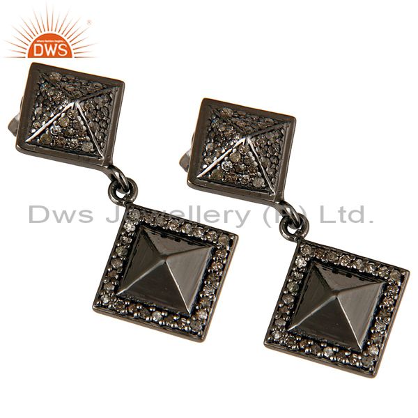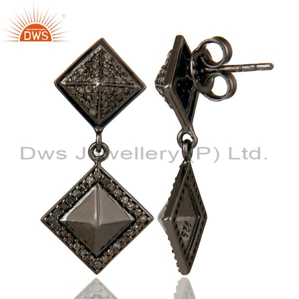 Oxidized Sterling Silver Pave Setting Diamond Pyramid Dangle Earring