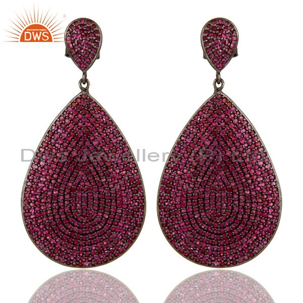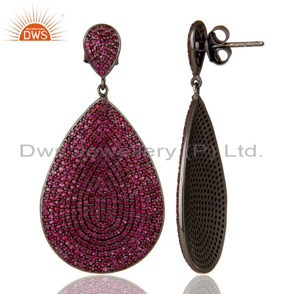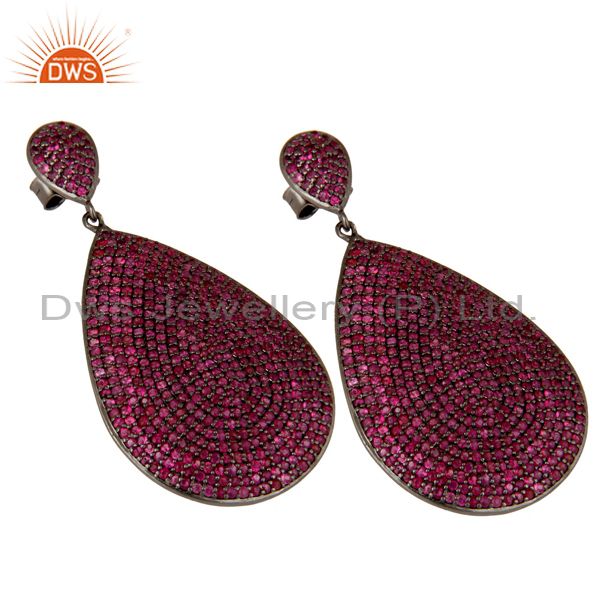 Oxidized Sterling Silver Pave Setting Natural Ruby Teardrop Earrings
