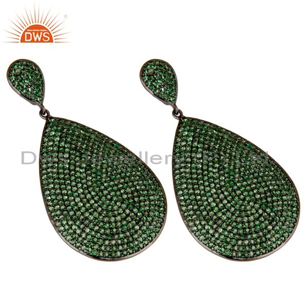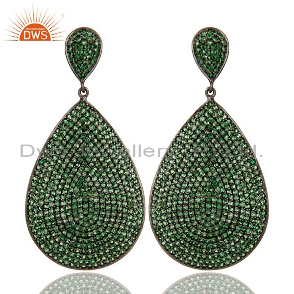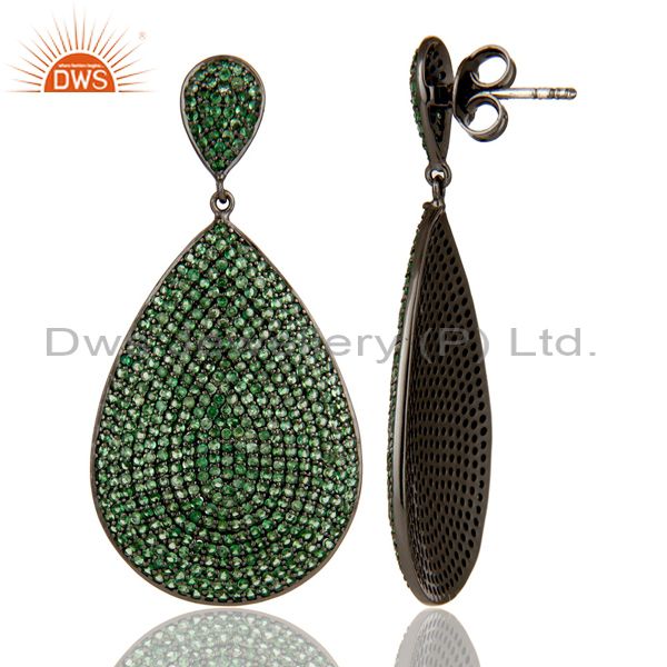 Oxidized Sterling Silver Pave Setting Tsavorite Gemstone Teardrop Earrings