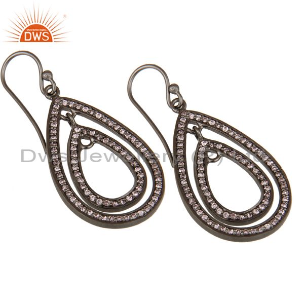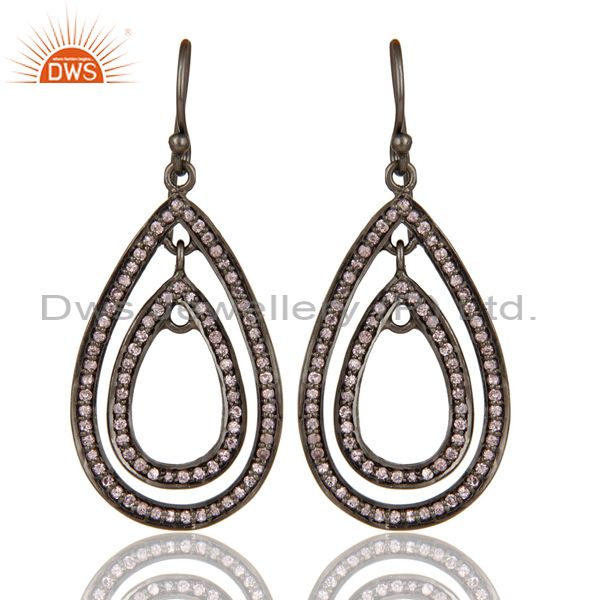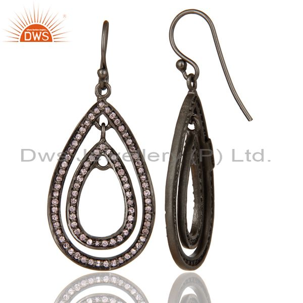Oxidized Sterling Silver Pink Zirconia Vintage Fashion Dangle Earrings