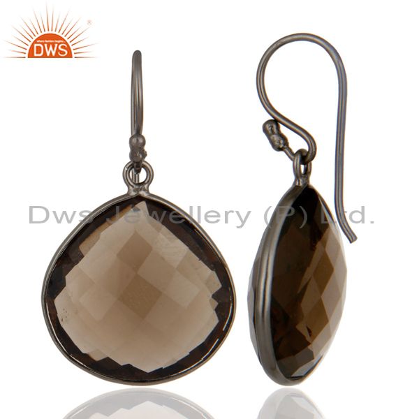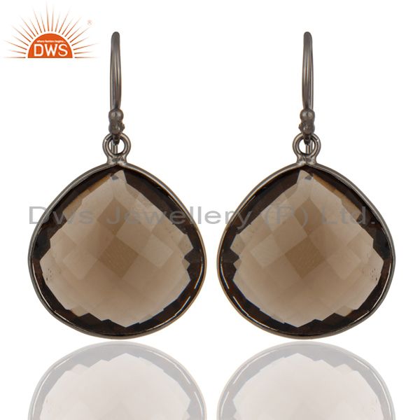 Oxidized Sterling Silver Smoky Quartz Gemstone Bezel Set Drop Earrings