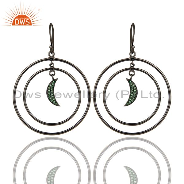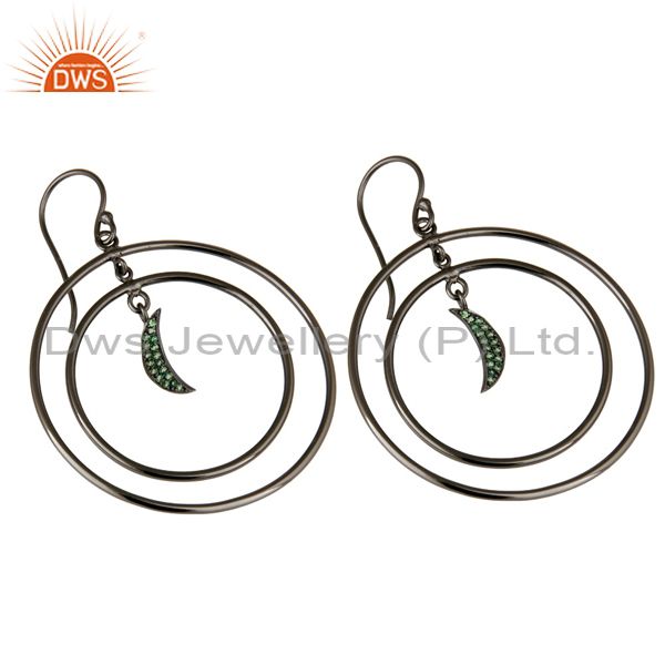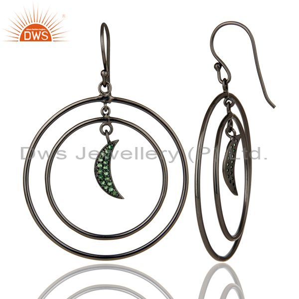 Oxidized Sterling Silver Tsavourite Half Moon Charm Circle Dangle Earrings